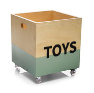 na parede, junto às prateleiras e os caixotes, que armazenam os brinquedos.