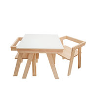 abrigam cada um uma atividade: leitura, escrita e cálculo (biblioteca com porta-livros, lousa branca e ábaco).
